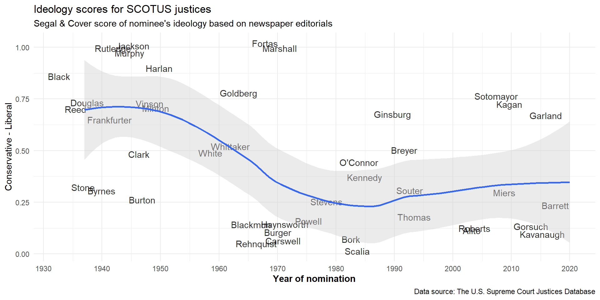 SCOTUS votes can be predicted from newspaper descriptions of the nominees (Segal and Cover 1989; Cameron and Park 2009)