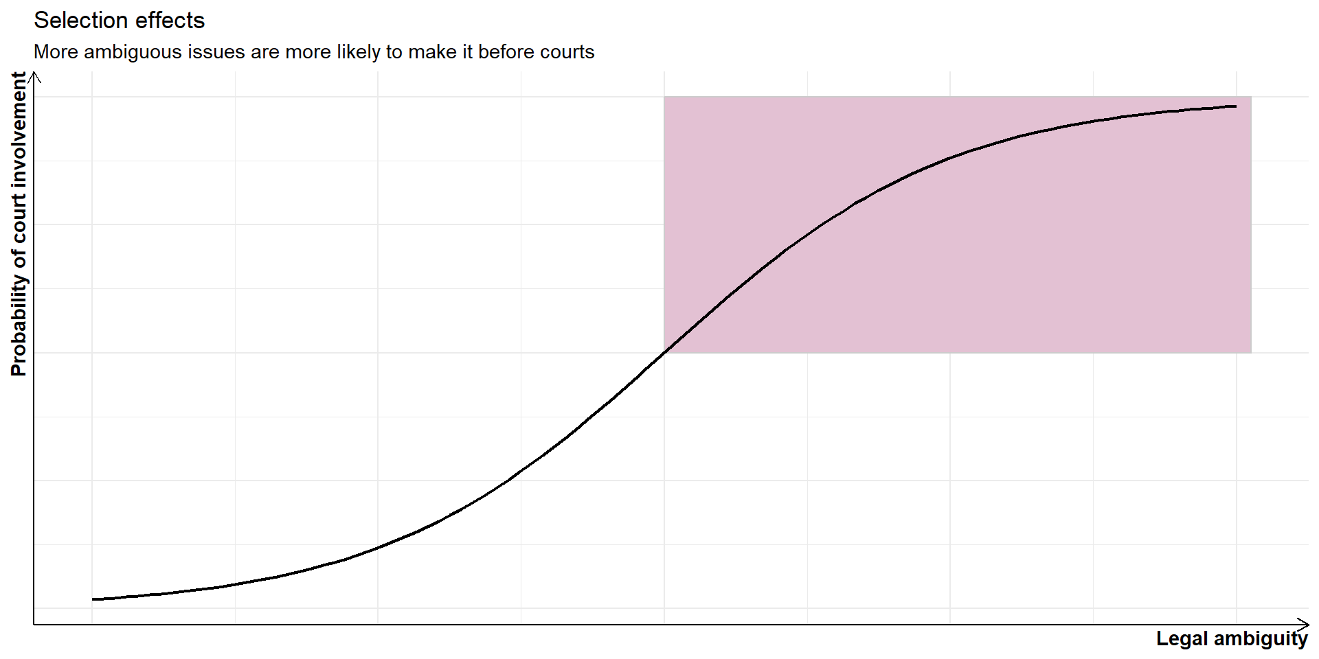 judges might choose to be deferential towards the government or politically popular causes for the same reason (Sisk, Heise, and Morriss 1998; Ramseyer 2001)